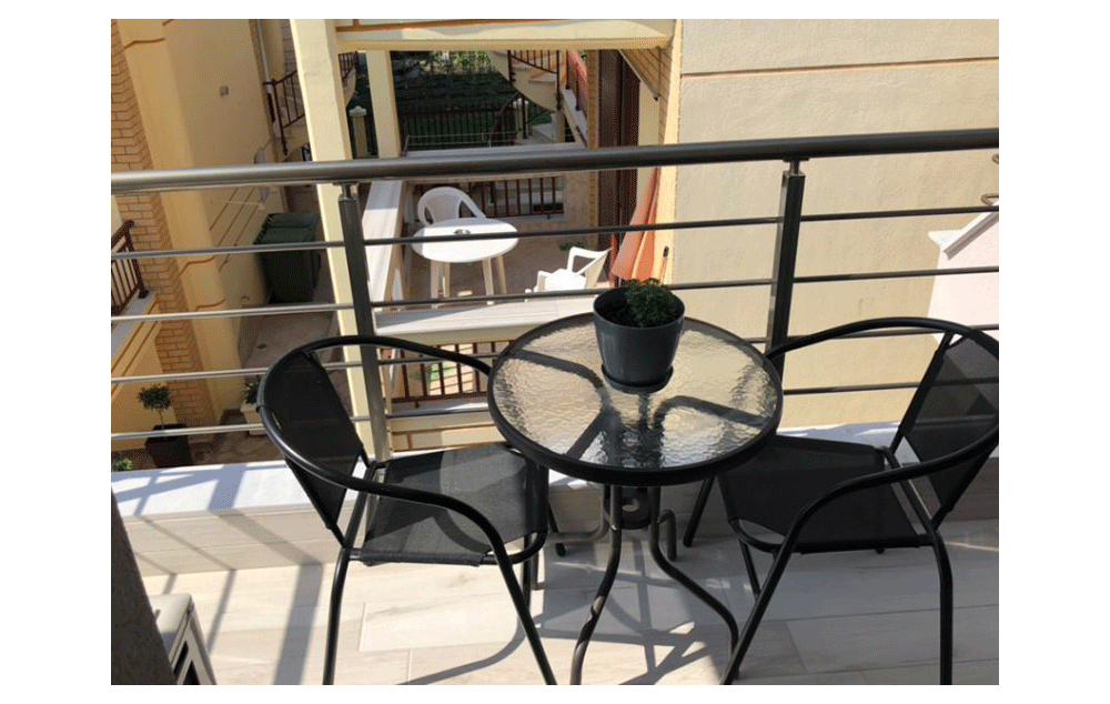 Opis: Sve smeštajne jedinice iz naše ponude se nalaze na prvom spratu. Studiji su lepo i moderno opremljeni i mogu da ugoste 3-4 osobe max. Svaka smeštajna jedinica poseduje opremljen kuhinjski deo, kupatilo, terasu, WIFI, TV i klima uređaj (uz doplatu na licu mesta od 6€ dnevno).