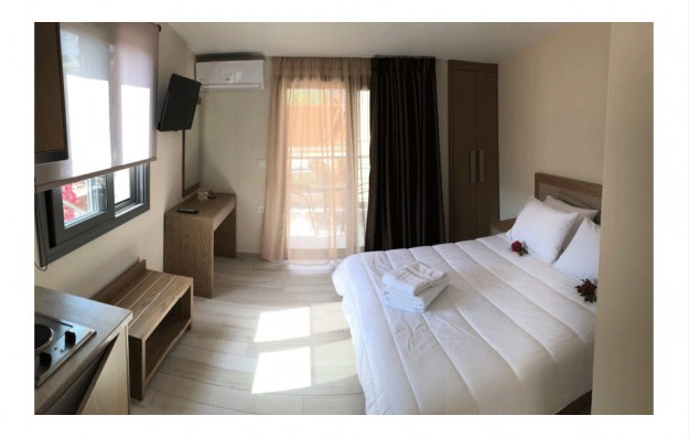 Opis: Vila raspolaže sa moderno opremljenim, dvokrevetnim studijima, koji se nalaze na prvom spratu. Svaka smeštajna jedinica ima kompletno opremljenu kuhinju, kupatilo/wc, terasu, TV, WiFi internet i klima uređaj (uz doplatu na licu mesta od 6€ dnevno).