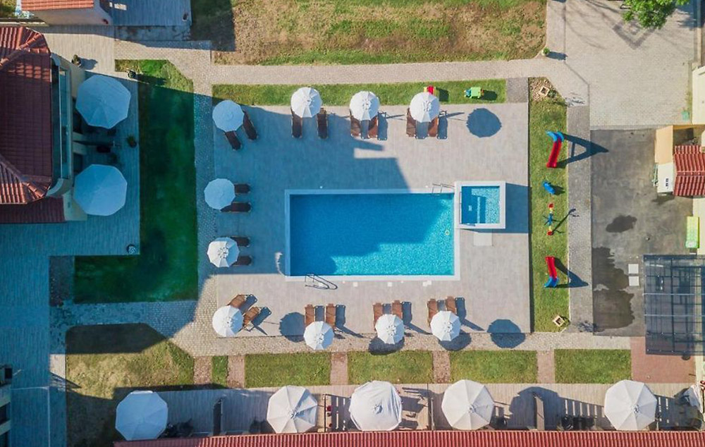 Lokacija: Hotel se nalazi u novom delu Sartija, iznad magistrale. Od najlepše plaže u Sartiju, Sarti Beach, udaljen je 250m. Ulazak u more u tom delu je postepen, pa je svakako pogodan i za porodice sa malom decom.