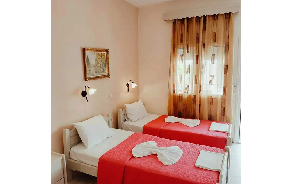 Opis: Vila poseduje studija namenjena za smeštaj dve, tri ili četiri osobe. Smeštajne jedinice se nalaze na visokom prizemlju i na prvom spratu, a svaka od njih ima opremljen kuhinjski deo, kupatilo/wc, terasu, TV, WiFi internet i klima uređaj (uz doplatu na licu mesta od 5€ dnevno).