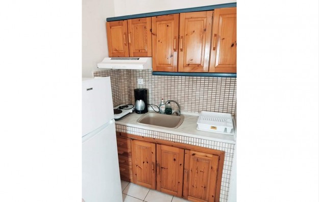 Opis: Poseduje dvokrevetna studija koja su smeštena u prizemlju. Svaki od njih ima opremljen kuhinjski deo, kupatilo/wc, terasu, TV, WiFi internet i klima uređaj (uključen u cenu aranžmana). U neposrednoj blizini se nalaze supermarketi, pekare, restorani, kafići i ostali sadržaji.
