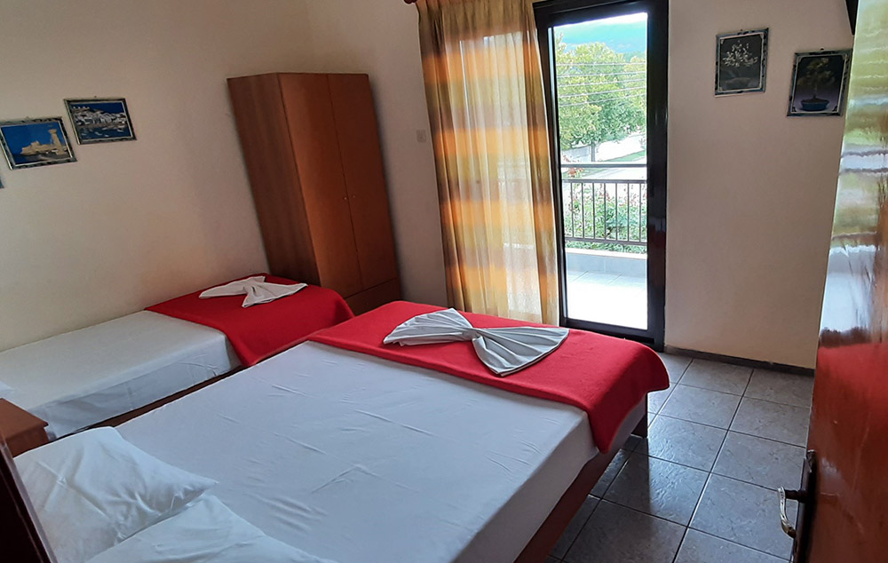 Lokacija: Vila Antigoni se nalazi u centru letovališta, na svega oko 100 metara od prelepe peščane plaže. Dvokrevetni i trokrevetni studiji se nalazi u prizemlju sa dvorišne strane, okruženi zelenilom