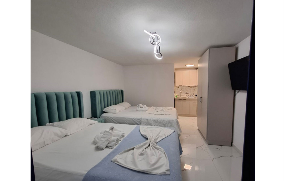 • Studio je smeštajna jedinica koja se sastoji od kupatila (tuš/WC) i jedne prostorije u kojoj se nalazi naznačeni broj ležaja i kuhinjski deo koji je opremljen rešoom, frižiderom i osnovnim posuđem