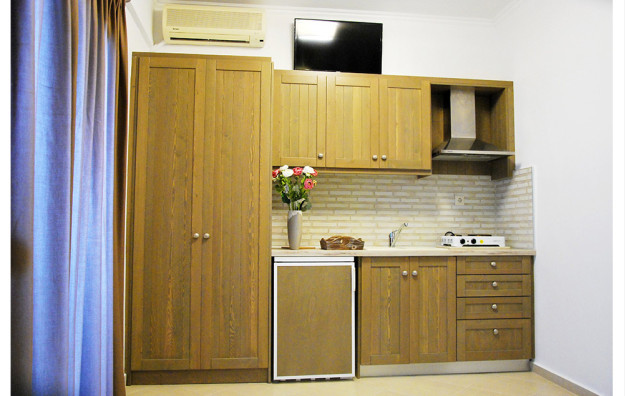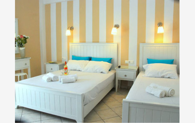 Lokacija: Mali hotel apartmanskog tipa, nalazi se pored crkve, u neposrednoj blizini centra, u mirnom delu Pefkohorija, na oko 190 metara od plaže.