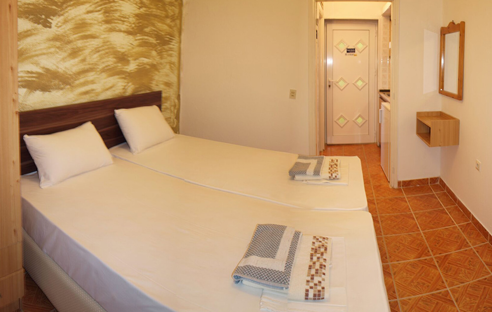 Opis: Poseduje dvokrevetna studija koja su smeštena u prizemlju. Svaki od njih ima opremljen kuhinjski deo, kupatilo/wc, terasu, TV, WiFi internet i klima uređaj (uključen u cenu aranžmana). U neposrednoj blizini se nalaze supermarketi, pekare, restorani, kafići i ostali sadržaji.