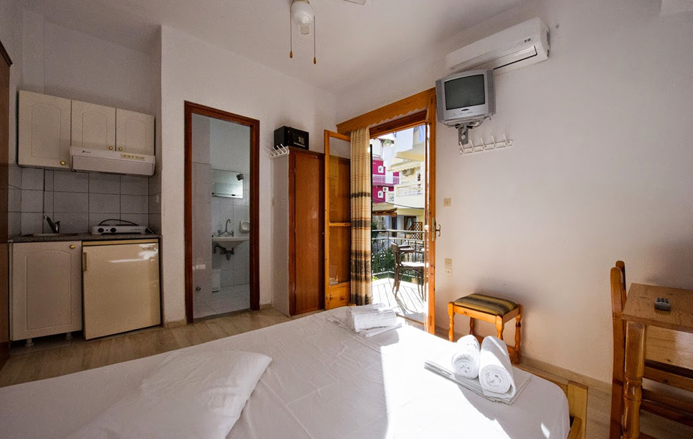Opis: U našoj ponudi su dvokrevetna i trokrevetna studija koja se nalaze u prizemlju i na prvom spratu. raspoređena u dva objekta koji se nalaze jedan pored drugoga i dele isto dvorište. Sve smeštajne jedinice su skromnije opremljene i imaju čajnu kuhinju, kupatilo/wc, peškire, terasu, TV (nema srpskih kanala), WiFi inernet, klima uređaj (uz doplatu na licu mesta, od 10€ dnevno).