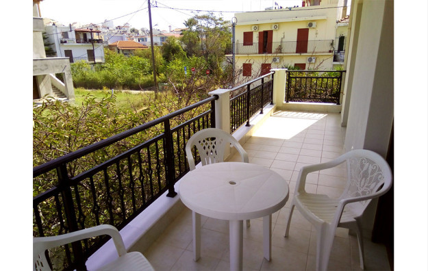 Vila Roula je novijeg datuma i nalazi u gradu Skiatosu, na oko 700 metara od strogog centra i oko 150 metara od najbliže autobuske stanice. Od najbliže plaže, Megali Amos, je nešto manje od oko 900 metara ili 2 autobuske stanice. Vila Roula je smeštena u lepom dvorištu sa zelenilom i cvećem, a dvokrevetni i trokrevetni studiji su na prizemlju, dok su četvorokrevetni apartmani na prizemlju i prvom spratu. Prelepi petokrevetni, +1 i +2 dupleks apartmani se nalaze na prvom spratu.