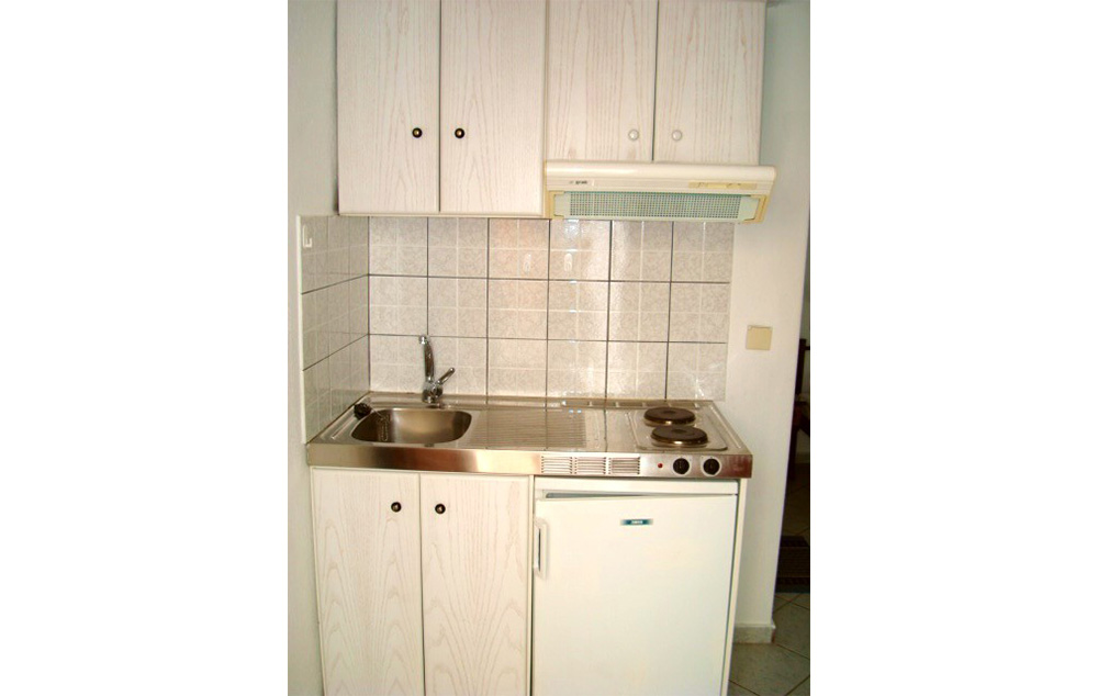 Opis: Vila poseduje dvokrevetna i dvokrevetna studija sa pomoćnim ležajem, smeštena u prizemlju i na prvom spratu. Prostor ispred studija u prizemlju je u funkciji zajedničke terase, a svaki ima svoju garnituru za sedenje. Studija na spratu imaju zajedničke-prolazne terase. Svaki studio poseduje mini čajnu kuhinju, kupatilo/wc, peškire, WiFi internet, TV, klima uređaj (uz doplatu na licu mesta od 6e dnevno). Na oko 200 metara se nalaze prodavnice, pekara, apoteka
