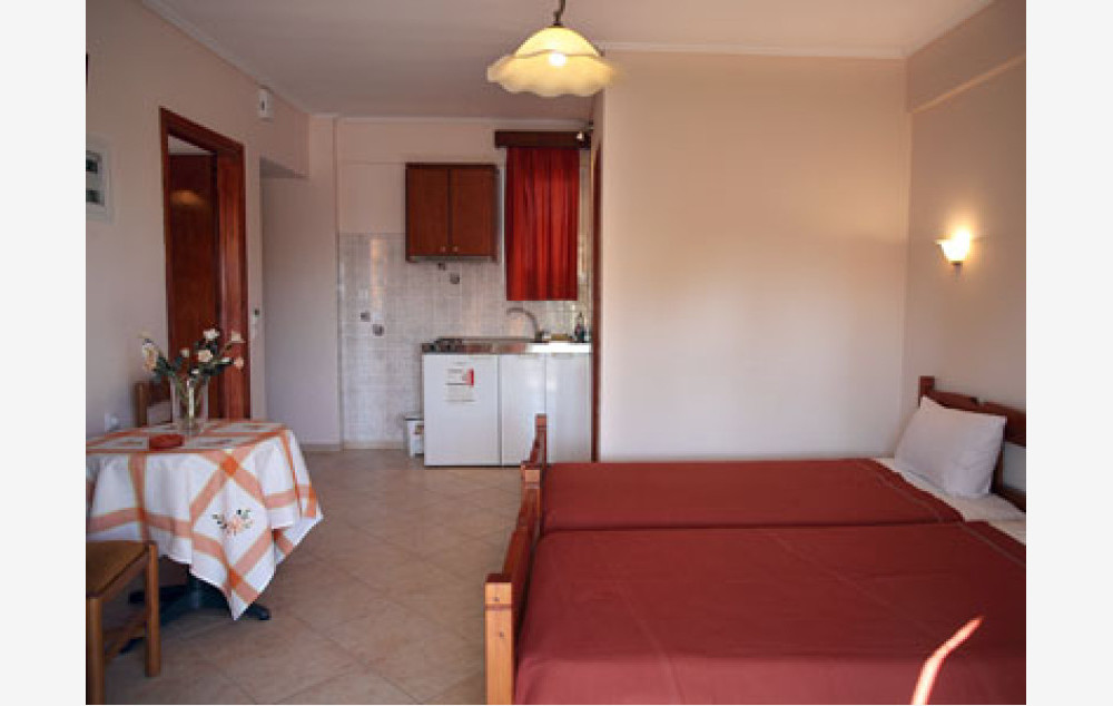 Opis: Smeštajne jedinice u našoj ponudi su dvokrevetni i trokrevetni studiji, kao i jedan promo studio, a nalaze se u prizemlju i na drugom spratu . Svaki studio poseduje opremljen kuhinjski deo, kupatilo/wc, peškire, terasu (osim promo studia), TV, WiFi internet i klima uređaj (uz doplatu na licu mesta od 5€ dnevno). Promo studio nema terasu, već se garnitura za sedenje nalazi u zajedničkom dvorištu.