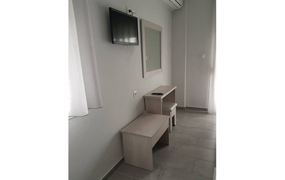 Opis: Vila Tasos u ponudi ima dvokrevetne, trokrevetne i četvorokrevetne studije na visokom prizemlju i drugom spratu. Sve smeštajne jedinice poseduju opremljen kuhinjski deo, kupatilo, terasu, TV, klima uređaj (uz doplatu na licu mesta od 7€ dnevno).
