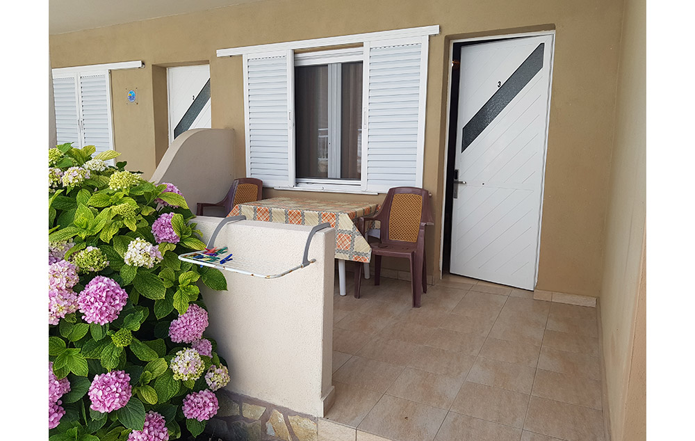 Opis: Poseduje studija namenjena za smeštaj dve do tri osobe, smeštena u prizemlju. Svaka od smeštajnih jedinica ima dva kreveta po grčkim standardima (širine 1.20 ), opremljen kuhinjski deo, kupatilo/wc, terasu, TV,WIFI i klima uredjaj (uz doplatu na licu mesta od 6e dnevno).