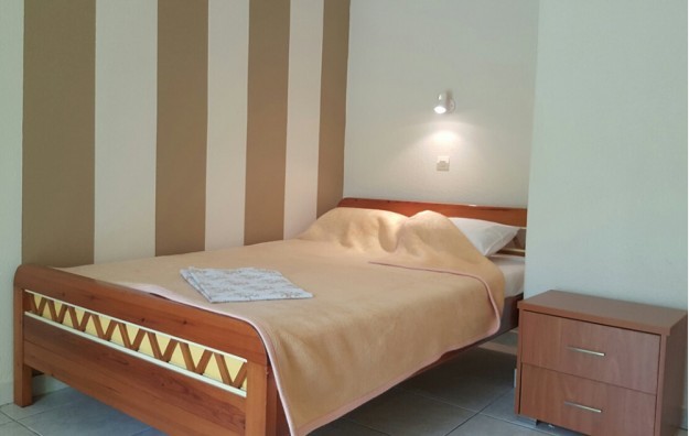 Opis: Vila je kvalitetno i moderno opremljena. Smeštajni kapaciteti u našoj ponudi su dvokrevetna i trokrevetna studija, koji se nalaze u prizemlju i četvorokrevetni mezoneti, koji su na prvom spratu. Svi imaju opremljen kuhinjski deo, kupatilo/wc, terasu, TV, WiFi internet i klima uređaj (uz doplatu na licu mesta od 7€ dnevno, odnosno u mezonetama dva klima uređaja od 14€ dnevno).