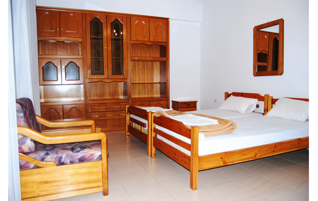 Lokacija: Mali hotel apartmanskog tipa, nalazi se pored crkve, u neposrednoj blizini centra, u mirnom delu Pefkohorija, na oko 190 metara od plaže.
