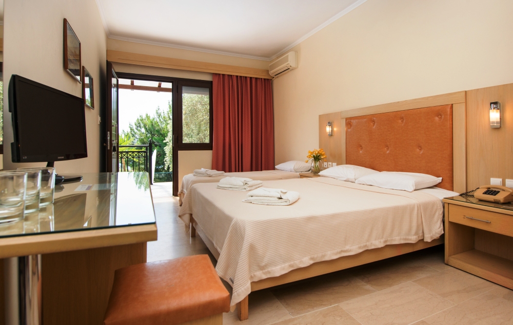 Triple Room - 18 m² elegantnog uređenja, većina soba ima pogled na more ili bazen (namenjeno za 3 osobe, s 1 bračnim i jednim odvojenim krevetom)