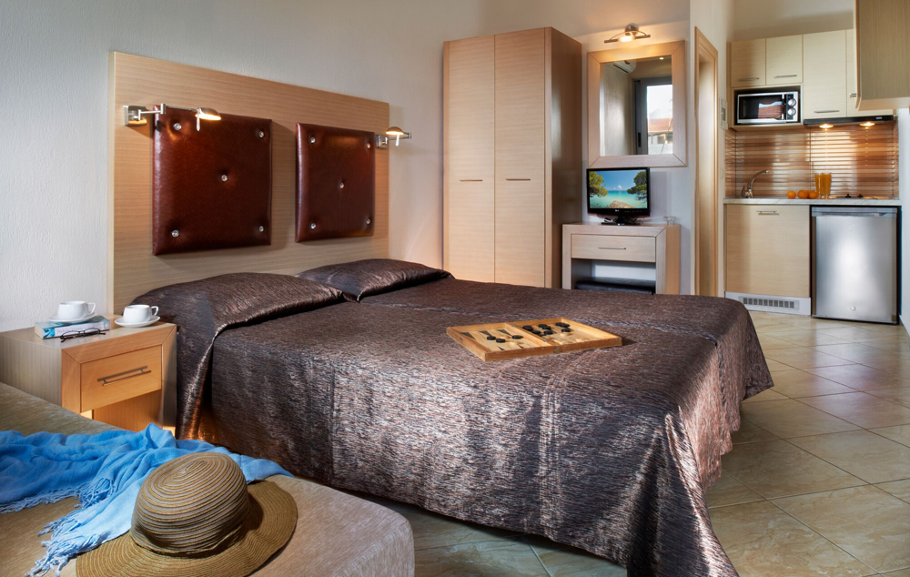 Superior junior suite-24 m2, sa elegantnim dekorom i potpuno opremljenom kuhinjom, ovi junior apartmani imaju bračni ili dva odvojena kreveta i kauč na razvlačenje, sopstveno kupatilo sa tušem i nameštenu terasu, pogodnu za 2-4 osobe.