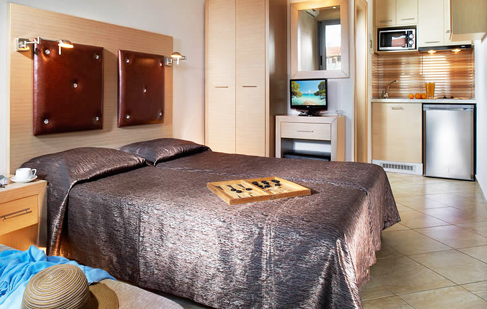 Studio-20 m2, jednoprostorni, potpuno opremljeni, samostalni studiji sa francuskim ili dva odvojena ležaja i pomoćnim ležajem, potpuno opremljenom kuhinjom, sopstvenim kupatilom sa tušem i nameštenom terasom, pogodnim za 2-3 osobe.
