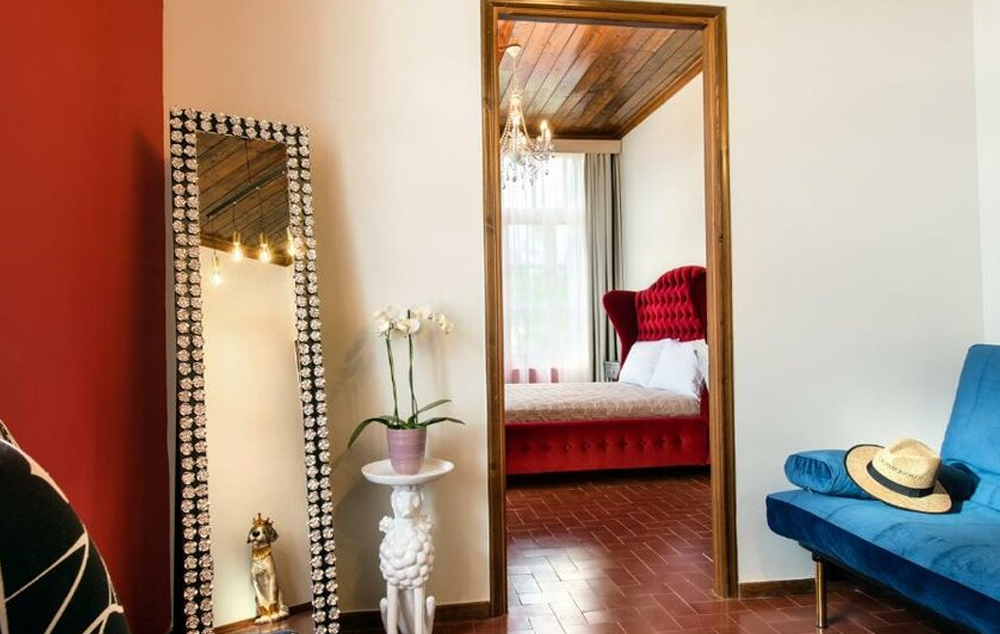 A - suite-28 m2, prostran i jedinstveno stilizovan apartman koji sadrži šarmantno uređenu spavaću sobu sa bračnim krevetom i odvojenu dnevnu sobu sa kaučem na razvlačenje, velikim prozorima koji gledaju na grad i sopstvenim kupatilom sa tušem.