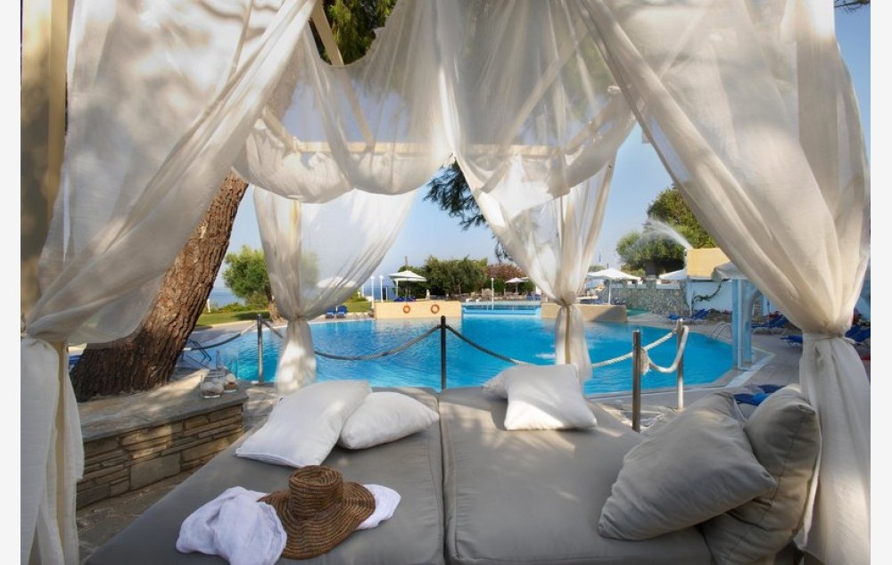 LOKACIJA: Skroman hotel po pristupačnoj ceni, nalazi se na oko 100 m od plaže, okružen zelenilom, izmedju tradicionalnog Nikitija (12km) i modernog Neos Marmarasa (10km). U lepom mediteranskom vrtu nalazi se centralna zgrada i 8 manjih u kojima su smeštajne jedinice.