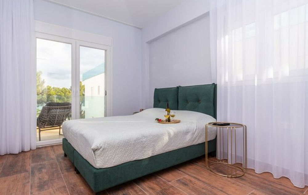 SOBE:  Sve sobe imaju kupatilo, klimu, balkon ili terasu, frižider, kuhinju, rernu, dasku za peglanje, mašinu za pranje veša, komarnik, TV, WiFi.