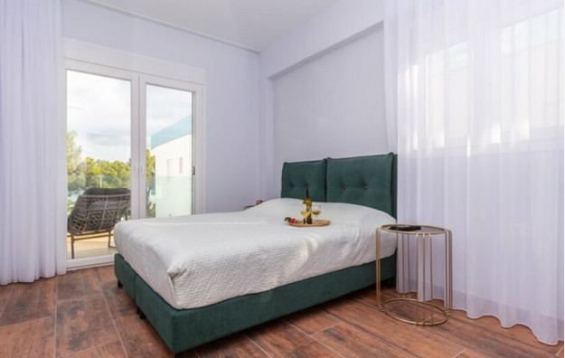 4 - bedroom villa- 100 m2, prostire se na tri etaže (2 sprata) s 3 spavaće sobe i 2 kupatila na spratu i 1 spavaćom sobom s kupatilom na srednjoj etaži, udobnim dnevnim boravkom i prostranom trpezarijom s kuhinjom u prizemlju, s direktnim pristupom nameštenoj verandi s prekrasnim pogledom na zalazak sunca.