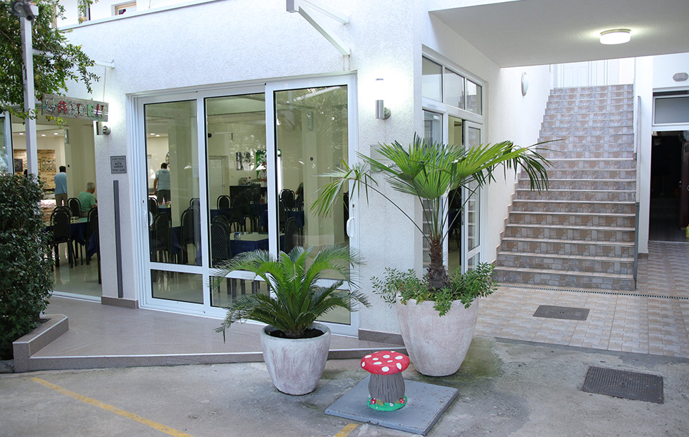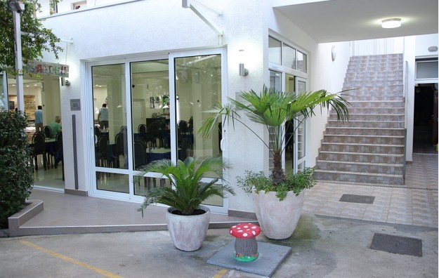 za decu -tobogani, ljuljaške, klackalice i drugi rekvizi# za dečiju zabavu. Objekat ima lif , recepciju i dvoetažni restoran.