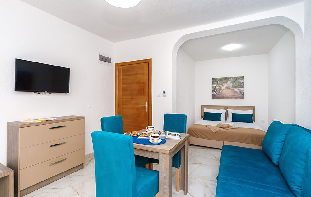 Studio-apartmani “LARA-S”udaljeni su 130m od plaže. U neposrednoj blizini se nalaze restorani, poslas#čarnice,
