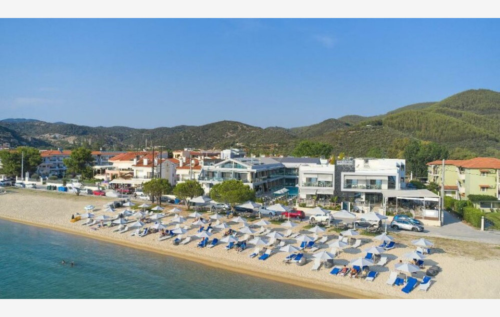 SADRŽAJ: Hotel ima privatnu plažu, bar na plaži, à la carte restoran koji poslužuje kreativna grčka jela i snack bar, otvoreni bazen s jacuzzijem, privatni parking, opremljena teretana( uz doplatu ), spa centar ( uz doplatu ), kozmetičke usluge i dečjem igralište