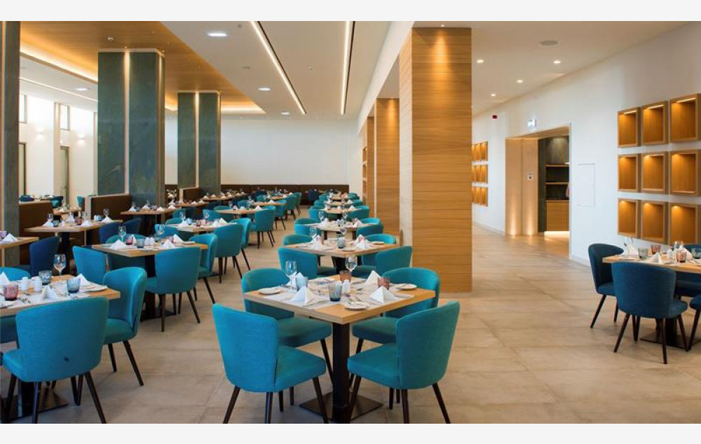 Gostima su na raspolaganju recepcija, lobi, glavni restoran, azijski, italijanski restoran, Enalia tradicionalni restoran pored obale, kao i grčka taverna, nekoliko barova (koktel bar, barovi kod bazena, snek bar, bar kod aqua parka…), WI FI internet konekcija, menjačnica, rent a car usluge (uz doplatu), parking, autobuska stanica na 100m od hotela, Aqua park, 4 bazena uključujući i dečiji, tereni za odbojku, teniski teren (uz doplatu), animacija za odrasle i decu, tri dečija kluba za sve uzraste do 12 godina, igraonica, usluge čuvanja dece (uz doplatu), Wellness & Spa centar uz doplatu, teretana, tematske večeri. Kod glavnog bazena koji je dug 140 metara kao i drugim delovima hotela postoji deo posebno za porodice “Family zone”. Takođe kod glavnog bazena i u restoranu postoji deo samo za odrasle “Adults zone”.