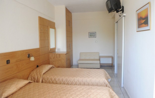 LOKACIJA: Hotel se nalazi ostrvu Amuliani, jedinom naseljenom ostrvu Halkidikija. Do ostrva se stiže trajektom, iz male luke Tripiti. Nalazi se na samoj plaži, a svega 200 metara od luke Amuliani. Sastoji se od jedne trospratne zgrade, renovirane 2013. godine. Lep, prijatan hotel, pogodan za udoban i miran odmor.