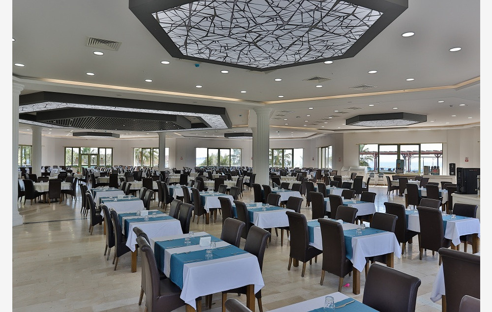 Sadržaj: recepcija, lobi, glavni restoran, 3 a la carte restorana - italijanski, riblji i nternacionalni), snack resotan, poslastičarnica, 5 barova, 2 otvorena bazena, 1 zatvoreni bazen, dečiji bazen, 3 tobogana, mini club za decu (4-12 godina), prostorija sa igricama, mini disco, tursko kupatilo, sauna, masaža, frizer, fitness club, gimnastika, zumba, basket, odbojka, stoni tenis, boćanje, usluga pranja i peglasnja veša, doktor na poziv, večernja animacija, wifi.