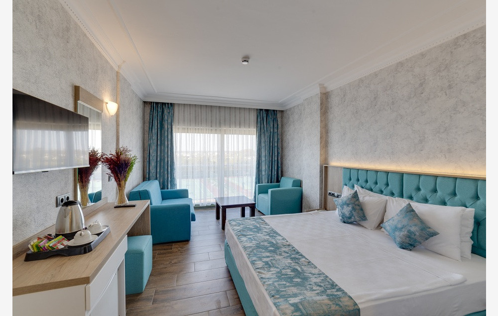 Sobe: Hotelske standard sobe se nalaze u hotelskoj zgradi koja je udaljenija od plaže i one su veličine 16-23m²: sve osbe imaju kupatilo (Tuš WC i fen za sušenje kose), klima uredjaj, mini-bar (dnevno dopunjavanje vodom, ostali napitci uz doplatu), aparat za pripremu kafe / čaja, sef (besplatno), SAT TV, francuski balkon, wifi. Maksimalno borave 2 odrasle osobe i 2 dece do 12 i 3 godine. Club standard sobe su veličine 22m² (nešto konfornije od hotelskih soba), iste su opremljenosti kao i hotelske sobe, samo što imaju balkon. Maksimalno borave 2 odrasle osobe i 2 dece od 12 i 3 godine. Club large sobe sa krevetima na sprat se sastoje iz jedne prostorije veličine oko 26m², iste su opremljenosti kao i club standardne sobe. Maksimalno borave 3 odrasle osobe i 1 dete do 12 godina. Club family sobe su veličine oko 30m², sastoje se iz dve prostorije, iste su opremljenosti kao i club standard sobe. Maksimalno borave 3 odrasle osobe i 1 dete do 12 godina.