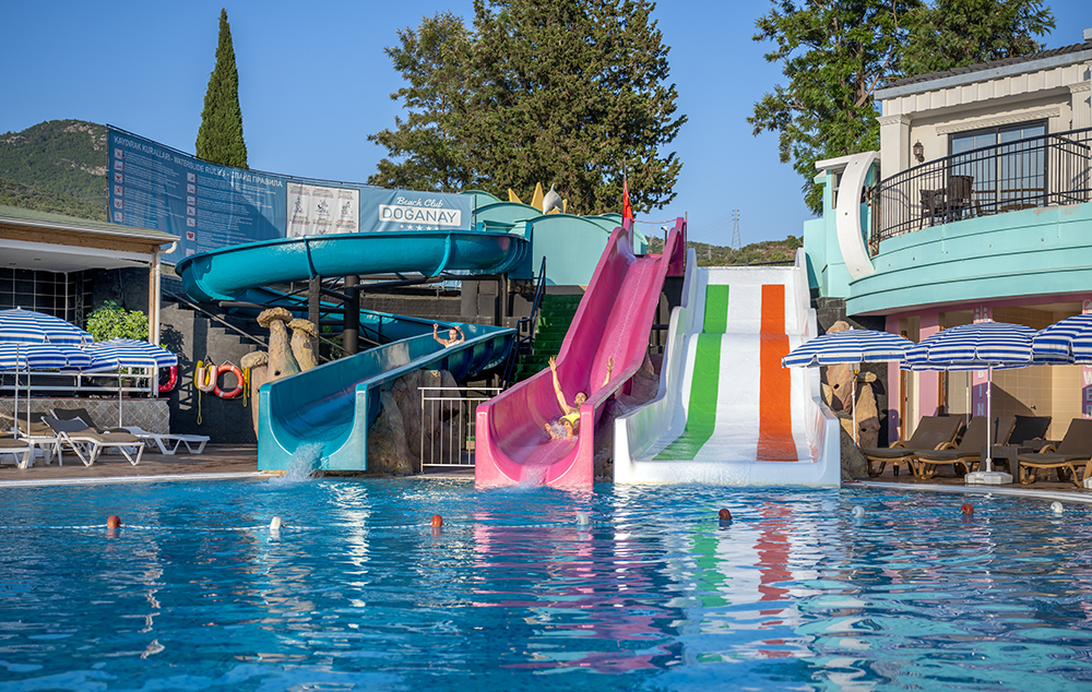 Hotelski sadržaj: Recepcija, glavni restoran, 3 a’la carte restorana (turski, italijanski i riblji - usluge jednog restorana jednom u toku boravka besplatno uz rezervaciju), 4 bara, 2 spoljašnja bazena, 1 unutrašnji bazen, 3 vodena tobogana, noćni klub, teniski teren, odbojka na pesku, fudbal na pesku, stoni tenis, gimnastika, bilijar, amfiteatar, tursko kupatilo, sauna, fitnes centar, pikado, aerobik, animacija, 2 dečija bazena, dečiji klub (4-12 godina) dečije igralište, wi fi.