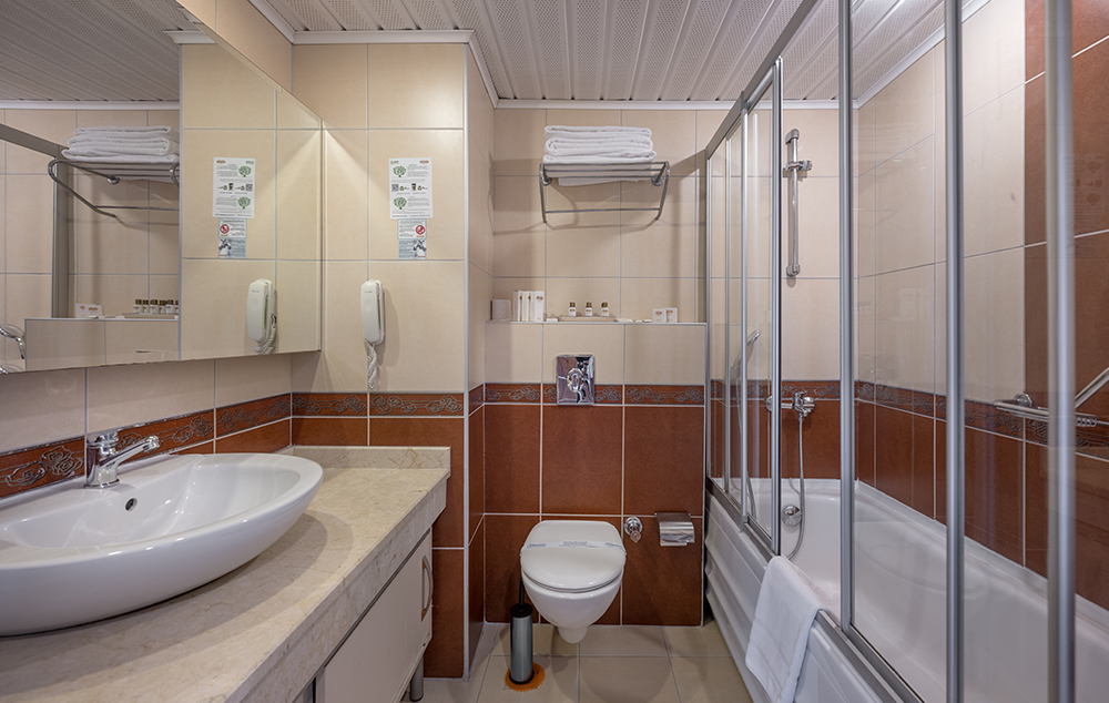 Sve sobe imaju: Kupatilo sa tušem/wc, klimu, fen, SAT/TV, telefon, mini bar (voda), sef, set za kafu i čaj, balkon, wi fi.