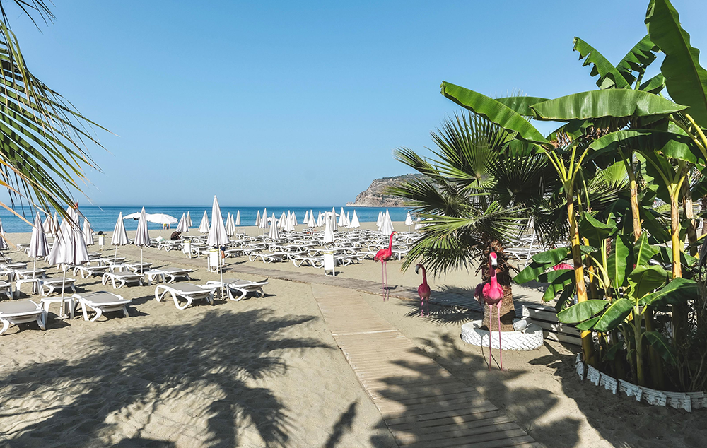 Plaža: Hotelska plaža (deo na Kleopatrinoj plaži )je udaljena 500m od hotela. Gostima je na raspolaganju shuttle bus koji vozi do plaže. Ležaljke i suncobrani koriste bez doplate. Peškiri za plažu su besplatni, svaka zamena se dodatno plaća. Bar na plaži se dodatno plaća.