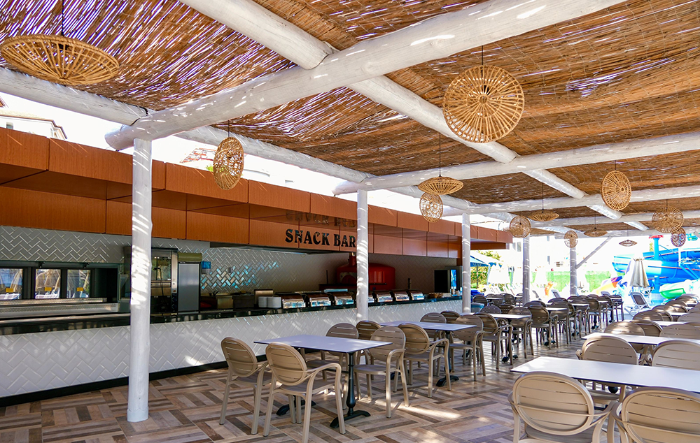 Hotelski sadržaj: Recepcija, glavni restoran, a la carte restoran, 4 bara, 2 bazena, aqua park, 2 dečija bazena, dnevna i večernja animacija, mini klub za decu (4-10 god.), dečije igralište, saunu, tursko kupatilo, stoni tenis, bilijar, odbojku na plaži.