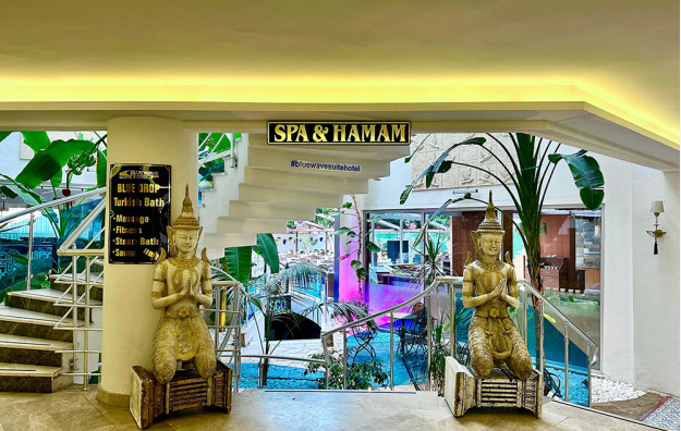 Hotelski sadržaj: Hotel poseduje glavni restoran, 2 a la carte restorana (turski i riblji-korišćenje jednog besplatno u toku boravka uz obaveznu rezervaciju), 2 bara, spoljašnji i unutrašnji bazen za odrasle i decu, večernju animaciju, dečiji klub 8za decu od 4-12 godina), dečija igraonica, mini disko, tursko kupatilo, sauna, masaže, fitness, aerobic, stoni tenis, bilijar, boćanje, pikado, wi fi.