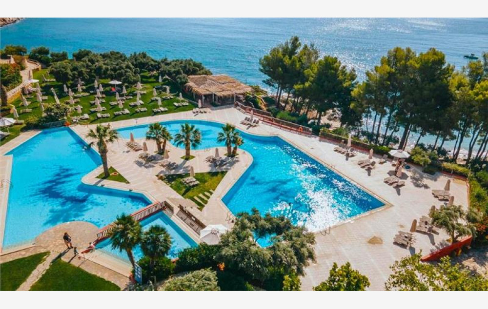Lociran je direktno na peščanoj plaži uz obilje prirodne hladovine koju pruzaju četinari. Suncobrani i ležaljke su besplatni za goste hotela.