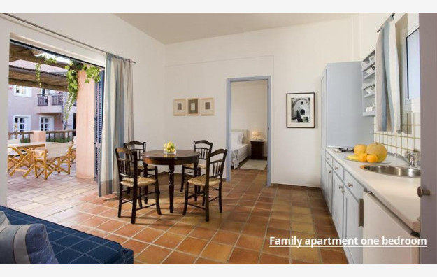 Hotel se sastoji od više manjih zgrada u kojima se nalaze 222 sobe, koje mogu biti udaljene od plaže i do 400 metara, sve sobe su dvokrevetne po svojoj osnovnoj strukturi, dok ostali ležajevi mogu biti pomoćni. "Jednosobni family apartman village view" je kvadrature 40 m2 i sastoji se od spavaće sobe i dnevnog boravka sa trpezarijom i kuhinjom. U kuhinjskom delu se nalaze pomoćni ležajevi predviđeni za spavanje treće ili četvrte osobe, a u spavaćoj sobi dva lezaja koji mogu biti spojeni ili odvojeni. "Jednosobni family apartman with garden" je iste kvadrature kao i jednosobni family apartman village view, sa razlikom što ima izlaz na bašte rizorta. Ljubitelji prirode će obozavati ovaj tip sobe zbog pristupa zelenim povrsinama rizorta. Jednosobni family apartman bočni pogled more je kvadrature 40 m2 i sastoji se od spavaće sobe i dnevnog boravka sa trpezarijom i kuhinjom. U kuhinjskom delu se nalaze pomoćni ležajevi predviđeni za spavanje treće ili četvrte osobe, a u spavaćoj sobi dva lezaja koji mogu biti spojeni ili odvojeni. Jednosobni superior apartman bočni pogled more je kvadrature 60m2 može da primi maksimalno četvoro odraslih i dvoje dece ili troje odraslih i troje dece. Sastoji se od jedne spavaće sobe sa dva odvojena kreveta, dnevnog boravka sa trpezarijskim stolom i četiri kreveta na razvlačenje. Svi tipovi apartmana imaju: klima uređaj, wi-fi internet, direktna telefonska linija, sef, SAT-TV, fen za sušenje kose, kuhinju za pripremanje laganih obroka, frižider, aparat za kafu ili čaj, balkon ili terasu sa garniturom za sedenje.