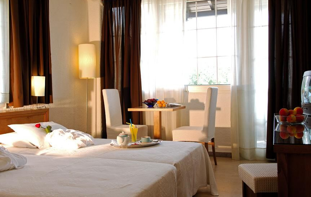 Garden View Room- 24 m2, nalazi se u glavnoj zgradi na gornjim spratovima, sa pogledom na baštu, ima bračni ili dva odvojena kreveta, sopstveno kupatilo sa tušem i nameštenu terasu sa pogledom na baštu hotela.