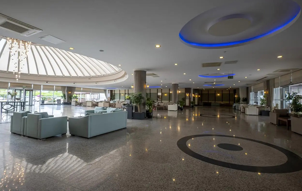Hotelski sadržaj: Recepcija, glavni restoran, a la carte restoran, lobby bar, bar pored bazena, bar na plaži, bazen sa toboganima i odvojenim delom za decu, poslastičarnicu, mini klub za decu 4-12 god., mini disko, animaciju za decu i odrasle, noćnu animaciju, spa centar (teretana i sauna besplatno, ostalo uz doplatu), wi fi u lobiju je besplatan.