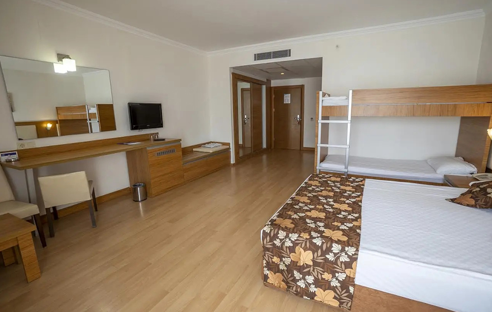 Family sobe sa krevetom na sprat (28m2). Sadrže francuski ležaj ili dva odvojena ležaja i krevet na sprat. Maksimalno mogu da borave dve odrasle osobe i dva deteta do 12 godina.