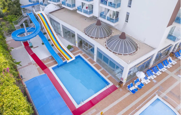 Položaj: Hotel je udaljen 120km od Antalijskog aerodroma i 100m od centra Alanje. Poslednji put renoviran 2019. godine. Preko puta hotela se nalazi aqua park Alanja.