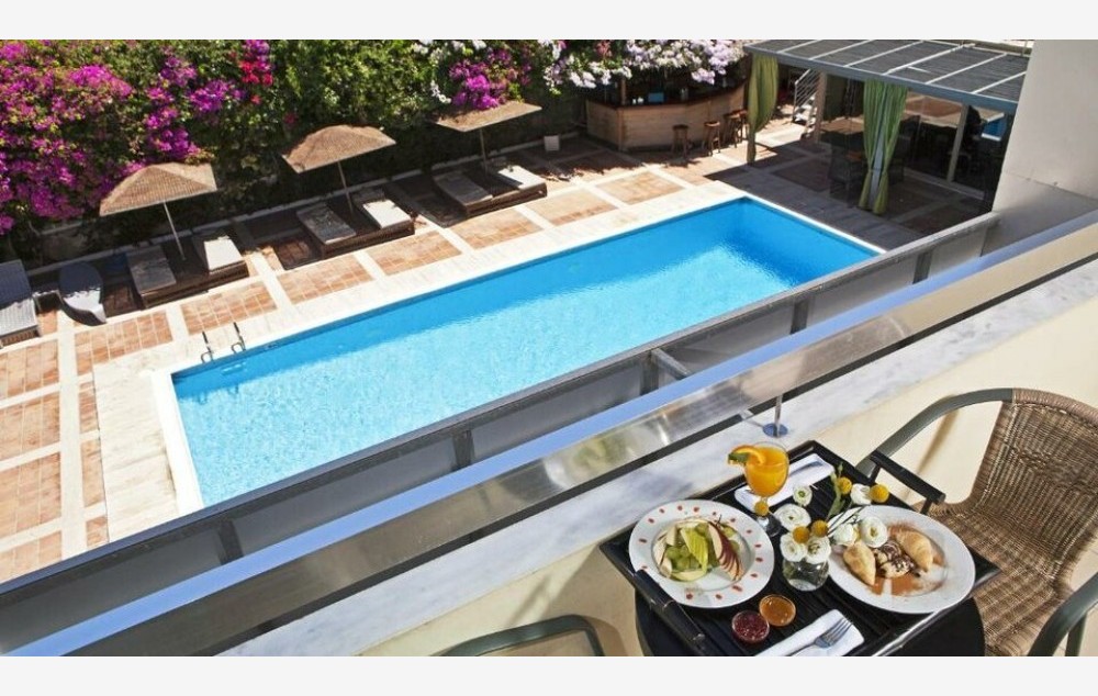 Superior Suite – Apartmani otvorenog tipa od 50 m² uređeni u afričkom stilu, sa spavaćim delom opremljenim bračnim ili dva odvojena kreveta i dnevnim boravkom s kaučem na razvlačenje za treću osobu, sopstvenim kupatilom i nameštenim balkonom s pogledom na more i Saronski zaliv.
