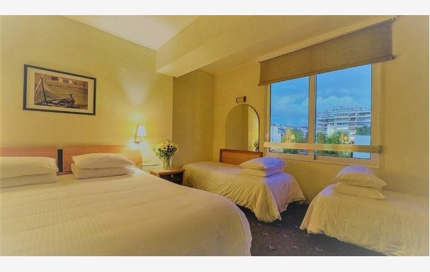 Executive Room Sea View - Sobe otvorenog tipa od 24 m² opremljene bračnim ili dva odvojena kreveta i dodatnim krevetom za treću osobu, sopstvenim kupatilom i nameštenim balkonom s pogledom na more i Saronski zaliv.