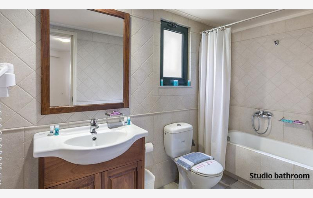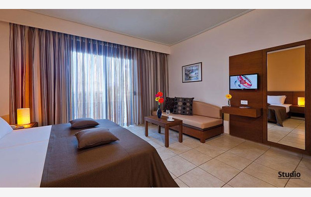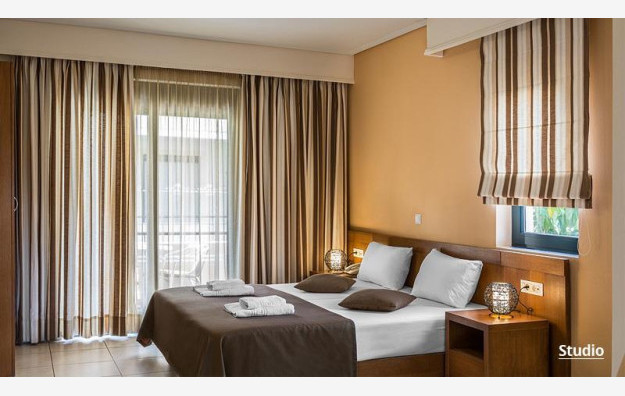 Sadrži ukupno 143 komforne sobe koje mogu biti locirane u prizemlju, na prvom ili drugom spratu. Našim putnicima su na raspolaganju sobe tipa studio i apartman. Mogu biti sa pogledom na bazen ili baštu. Studiji su kapaciteta maksimum dvoje odraslih, dete i beba, ili tri odrasle osobe i beba, sadrže francuski ležaj ili dva standardna ležaja, kao i dodatni ležaj za potrebe treće, a koji može biti pomoćni. U apartman mogu da se smeste do četiri odrasle osobe i beba, tri odrasle osobe, jedno dete i beba ili dve odrasle osobe, dvoje dece i beba. Raspoređeni su duž celog kompleksa, lepo su dekorisani, pružaju udoban smeštaj i sadrže: bračni ili dva standardna ležaja, a za potrebe treće ili četvrte osobe ili deteta pomoćne ležajeve u vidu sofe. Oba sobe tipa studio i apartman su po svojoj osnovnoj strukturi dvokrevetne, dok ostali ležajevi mogu biti pomoćni. Sve sobe sadrže: kupatilo sa kadom ili tuš kabinom, balkon ili terasu, individualni klima uređaj (uključeno u cenu), Sat TV, fen, mini kuhinju, set za kafu/čaj, mini frižider, sef (uz doplatu), Wi-Fi (uključeno u cenu). Bebi krevetac je na usluzi gostima besplatno – obavezna najava prilikom rezervacije.