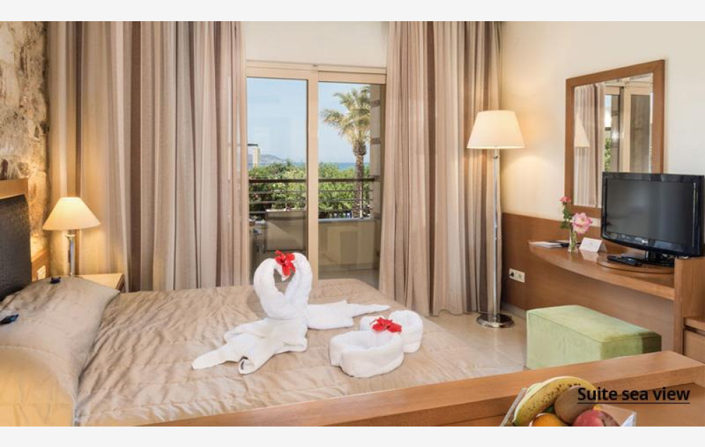 Soba “suite sea view” površine oko 36 m² namenjena je smeštaju za maksimalno dve odrasle osobe i dvoje dece ili tri odrasle osobe i dete i sadrži francuski ležaj i dve sofe predviđenu za spavanje treće i četvrte osobe. Svi tipovi soba ‘’standardne” i “suite” i su po svojoj osnovnoj strukturi dvokrevetne, dok ostali ležajevi mogu biti pomoćni. Svaka soba sadrži: mini kuhinju, aparat za kafu, frižider, sat TV, klima uređaj, Wi-Fi, fen za kosu, sef, telefon, kupatilo sa kadom ili tuš kabinom, balkon ili terasu. Bebi krevetac je na raspolaganju gostima uz obaveznu najavu prilikom rezervacije.