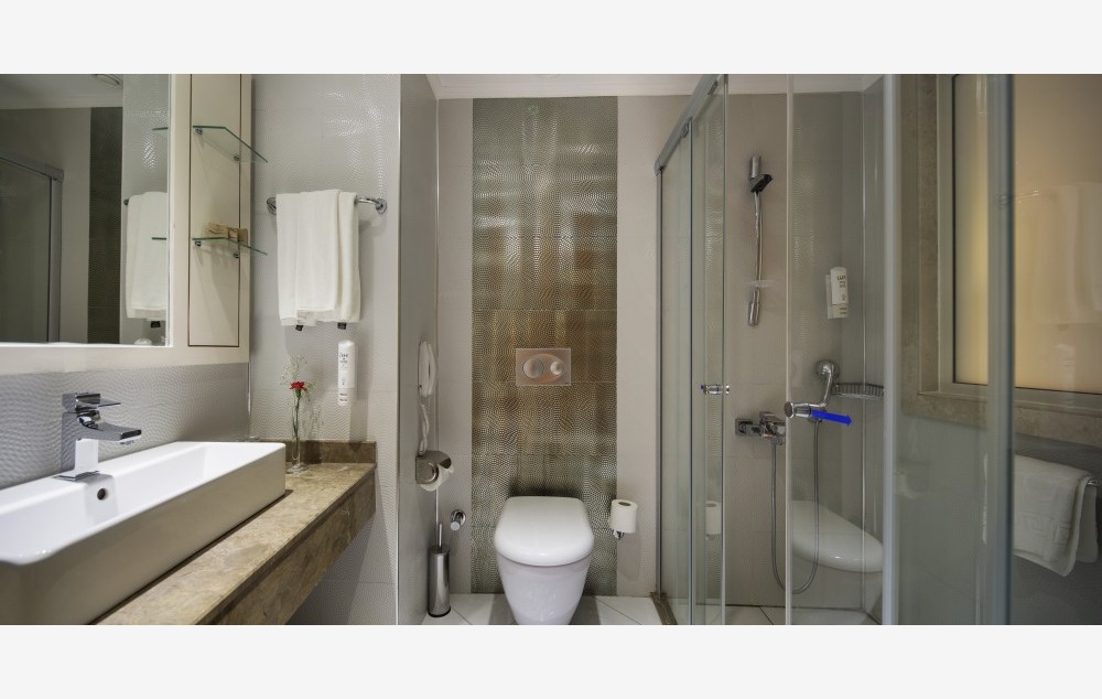 Svaka soba ima: Kupatilo sa tušem/wc, klimu, fen, SAT/TV, telefon, mini bar (samo voda besplatno), sef (uz doplatu), balkon.