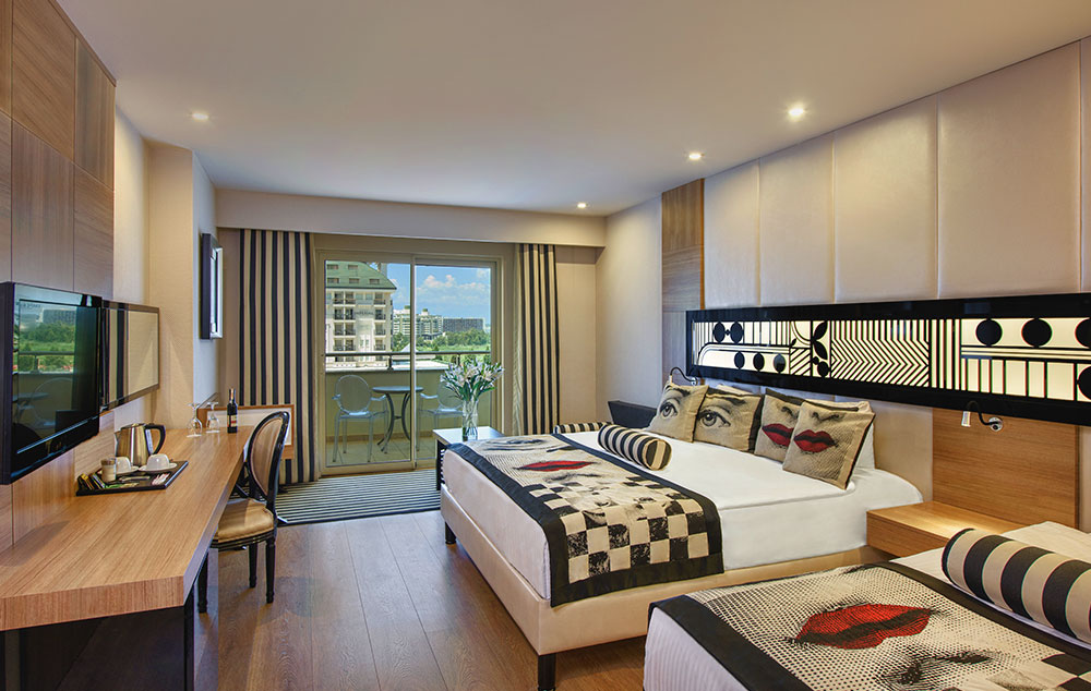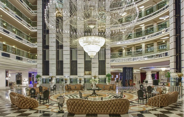 Hotelski sadržaj: Glavni restoran, 10 a la carte restorana, 12 barova, noćni klub, 2 otvorena bazena, unutrašnji bazen, bazen za decu, aqua park, SPA centar, tusko kupatilo, sauna, parno kupatilo, animacija za decu i odrasle, dečiji meni, mini klub (4-12 god), luna park, dečije igralište i bioskop, mini disko, kuglana, mini fudbal, odbojka na plaži, teniski teren, stoni tenis, bilijar, aerobik, gimnastika. Wifi je besplatan u sobama i lobiju.