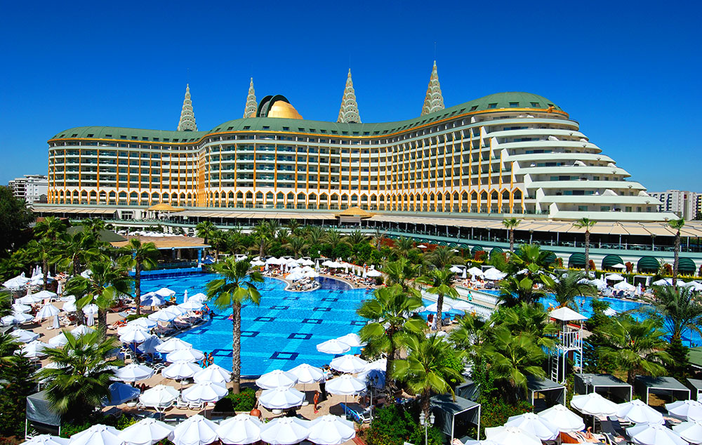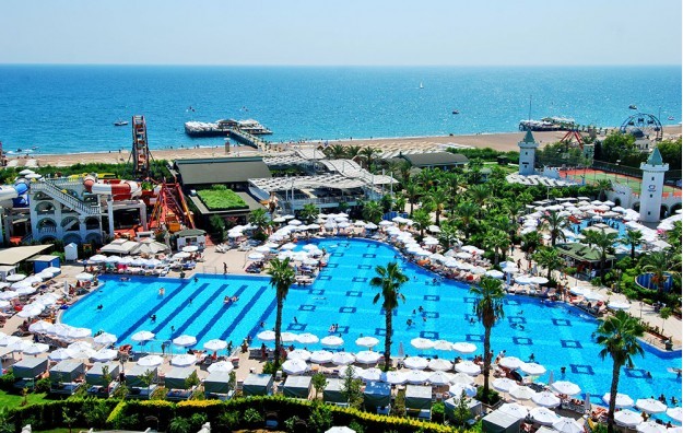 Hotelski sadržaj: Recepcija, 2 glavna restorana, 2 a la carte restorana, dijetalni meni, 13 barova, 2 unutrašnja i 5 spoljašnjih bazena, 5 dečijih bazena, 6 đakuzija, akva park sa 19 tobogana (10 dečijih), bioskopska sala, dnevne i večernje animacije, mini klub (za decu od 4-12 godina), teenage klub (za decu od 13-17 godina), mini disko, igraonica, aerobic u vodi, bocanje, pikado, stoni tenis, odbojka na pesku, teniski teren, košarka, tursko veče, hamam, sauna, parna soba, teretana, bilijar (uz doplatu), wi fi (u lobiju).