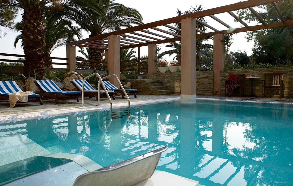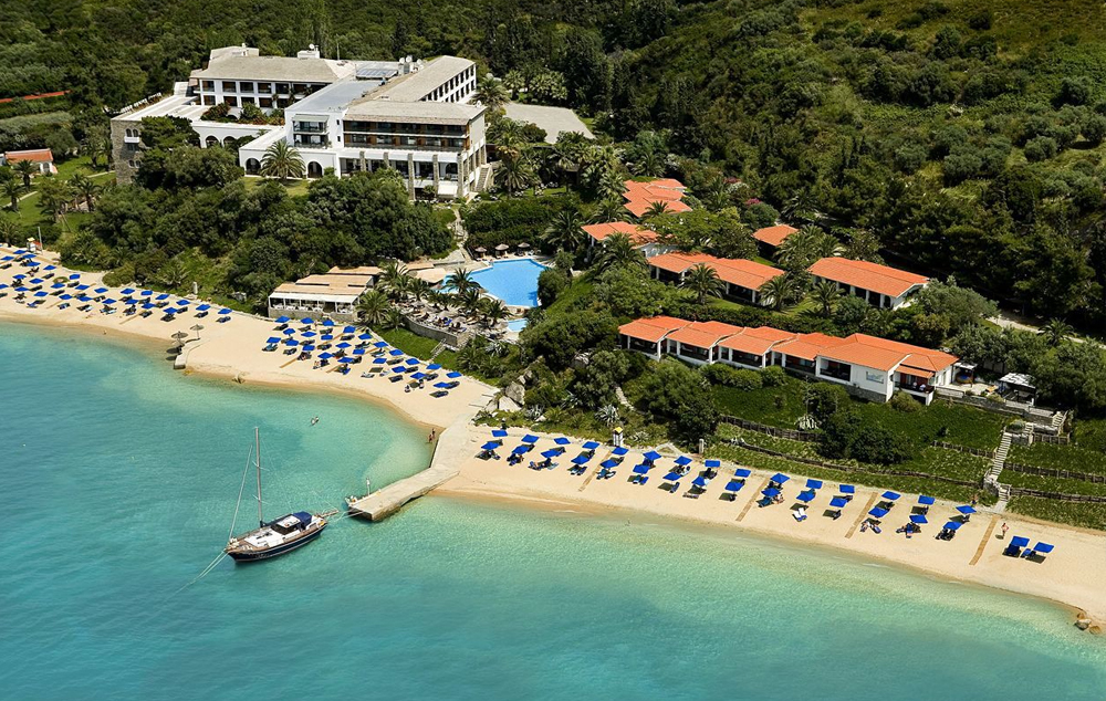 LOKACIJA: Još jedan u nizu malih luksuznih hotela, udaljen oko 4 km od mirnog mesta i luke Uranopolis, i nadomak granice sa Svetom zemljom - Atosom. Izgrađen u jedinstvenom vizantijskom stilu, Eagles Palace zaista pruža priliku kako za porodični odmor, tako i za profesinalna okupljanja u vidu kongresa, seminara i sl. Ima sopstvenu plažu.